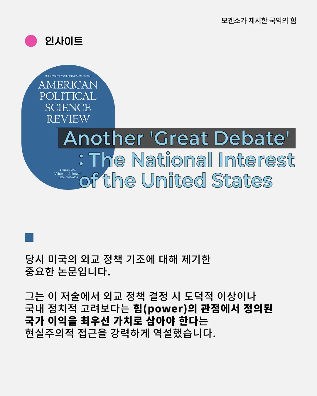 국제정치학계의 아버지 모겐소의 Another Great Debate 이해하기
