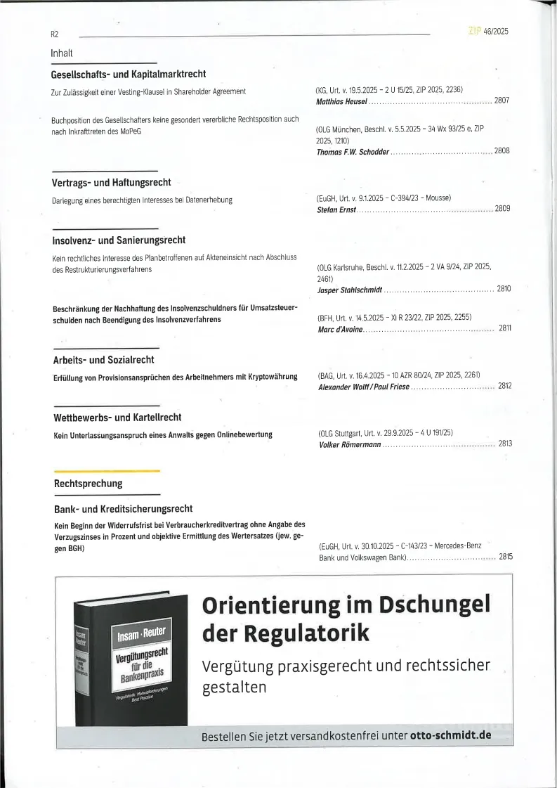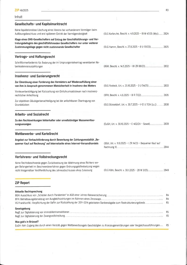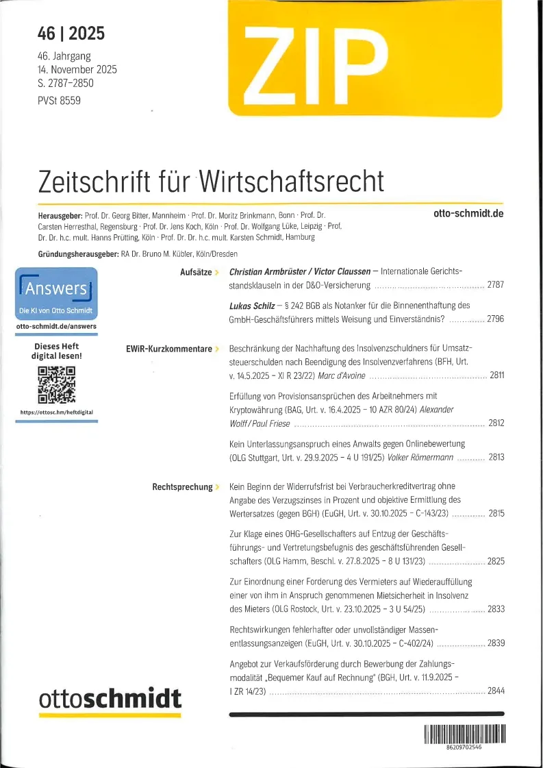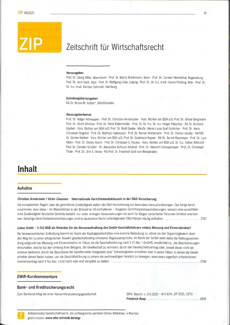 Zip : Zeitschrift für Wirtschaftsrecht