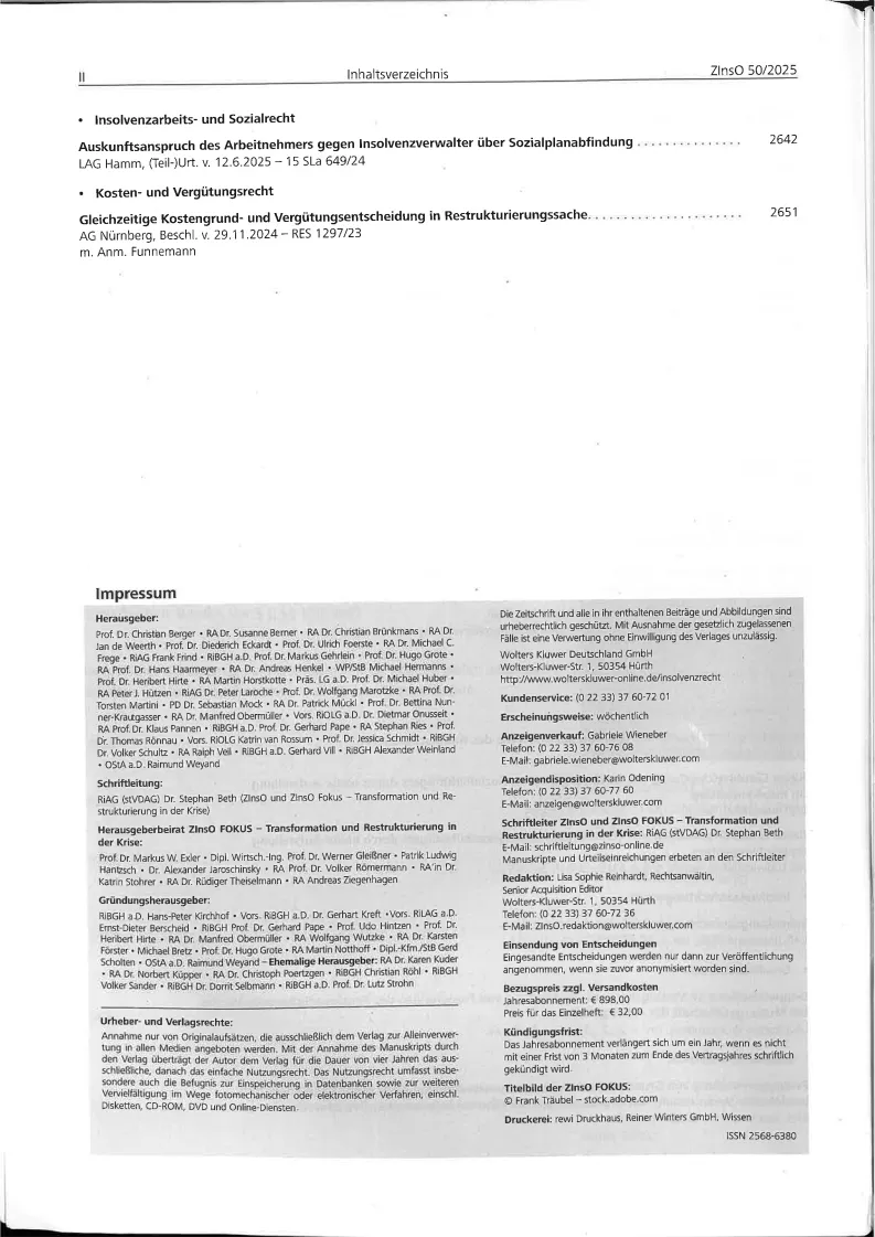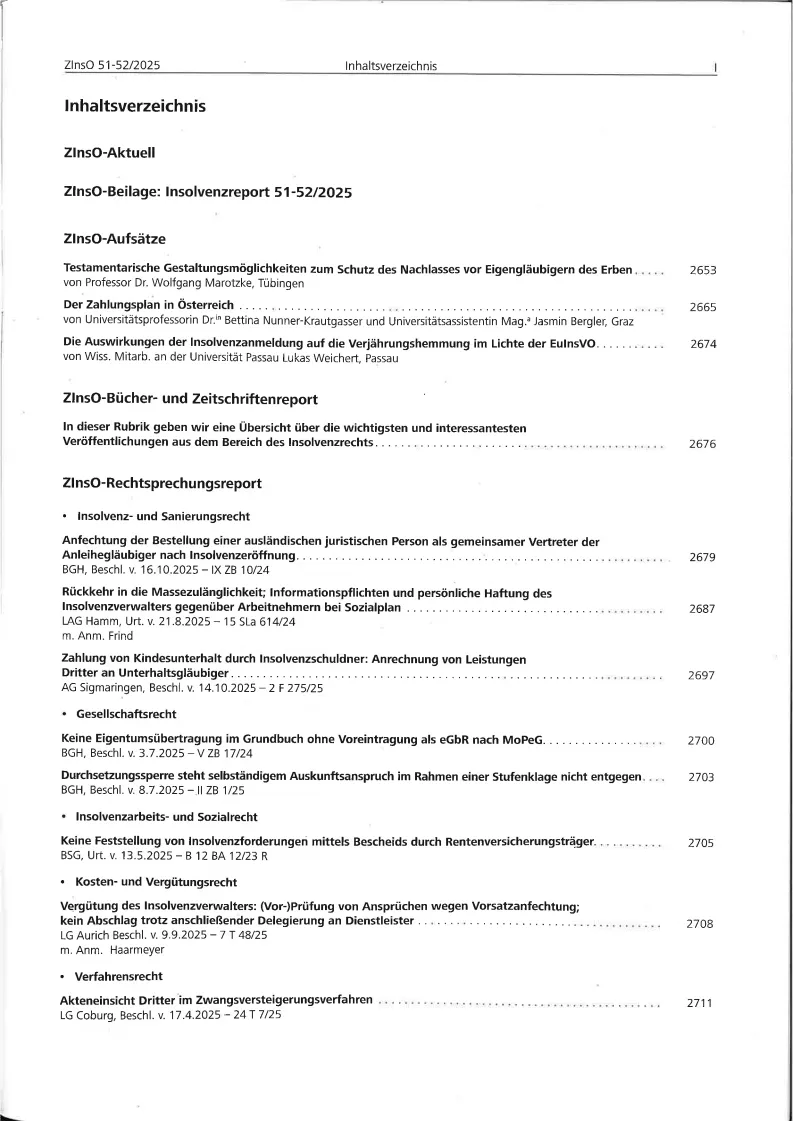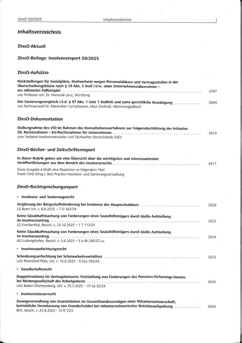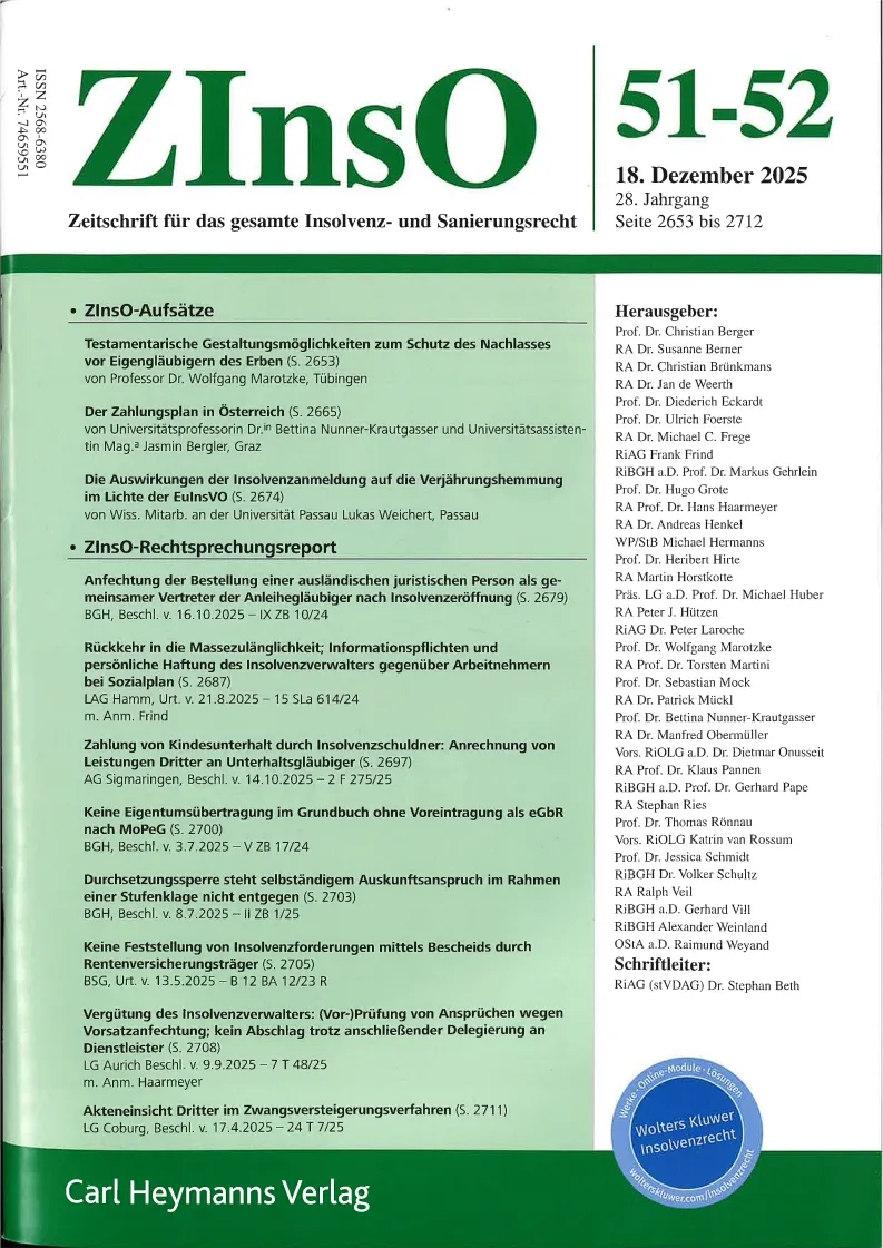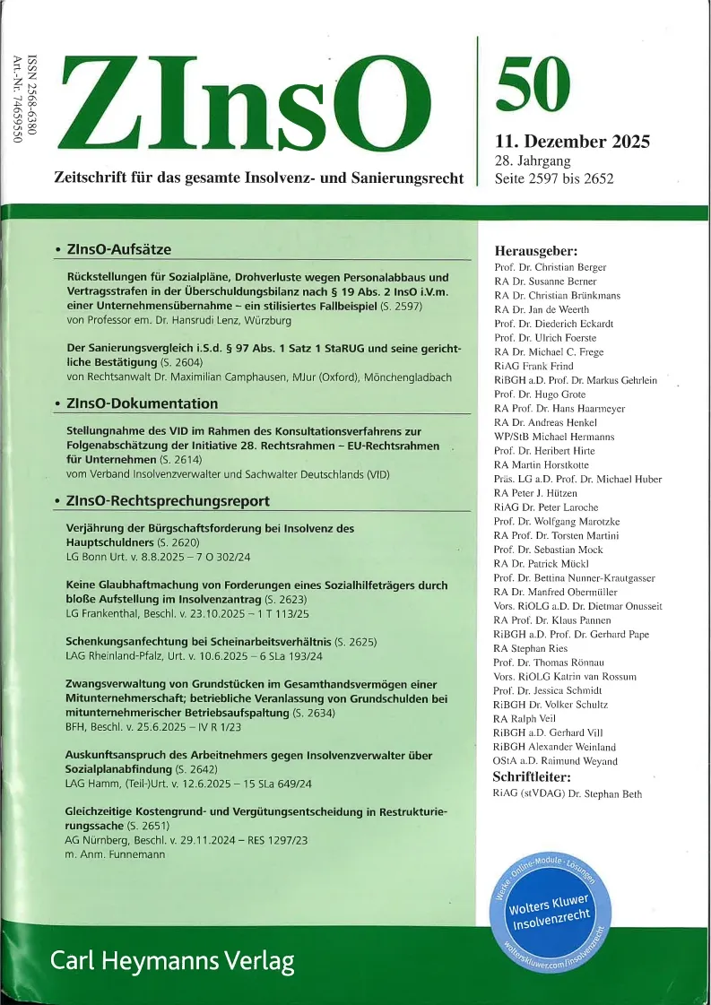 ZInsO Zeitschrift fuer das Gesamte Insolvenz- UND Sanierungsrecht