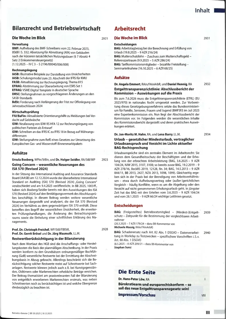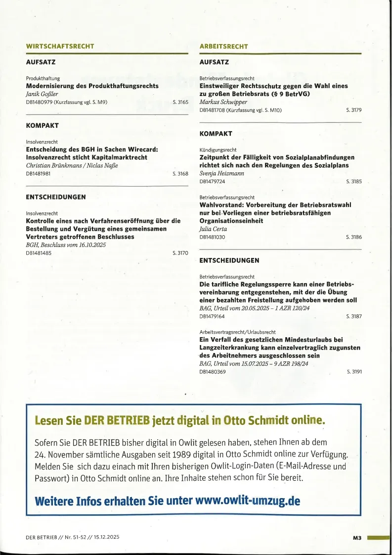 Betriebs-Berater incls BB special