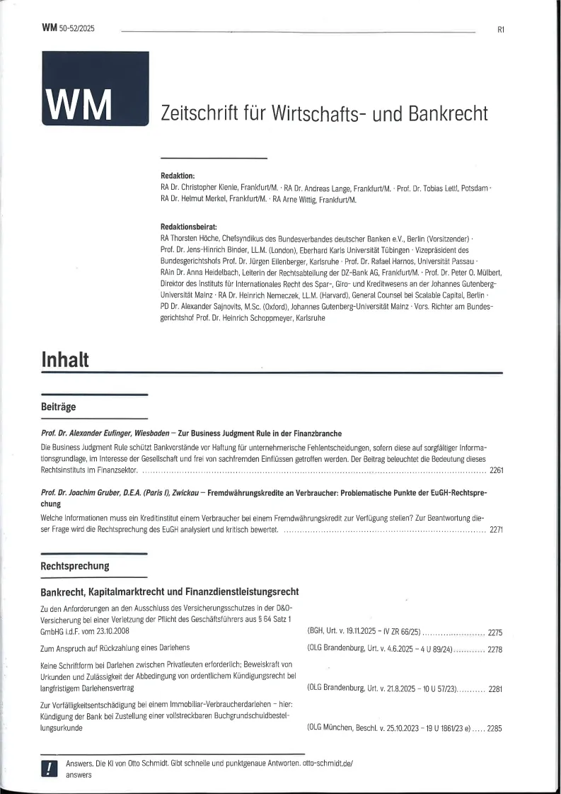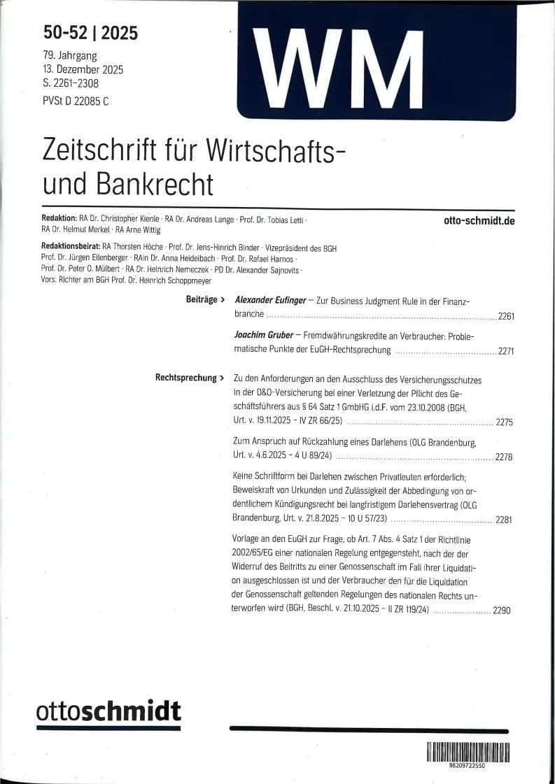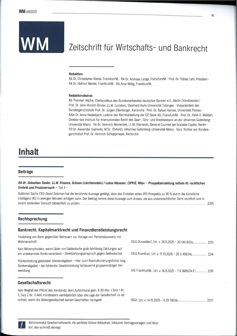 Wertpapier Mitteilungen - Part IV Zeitschrift fuer Wirtschafts und Bankrecht