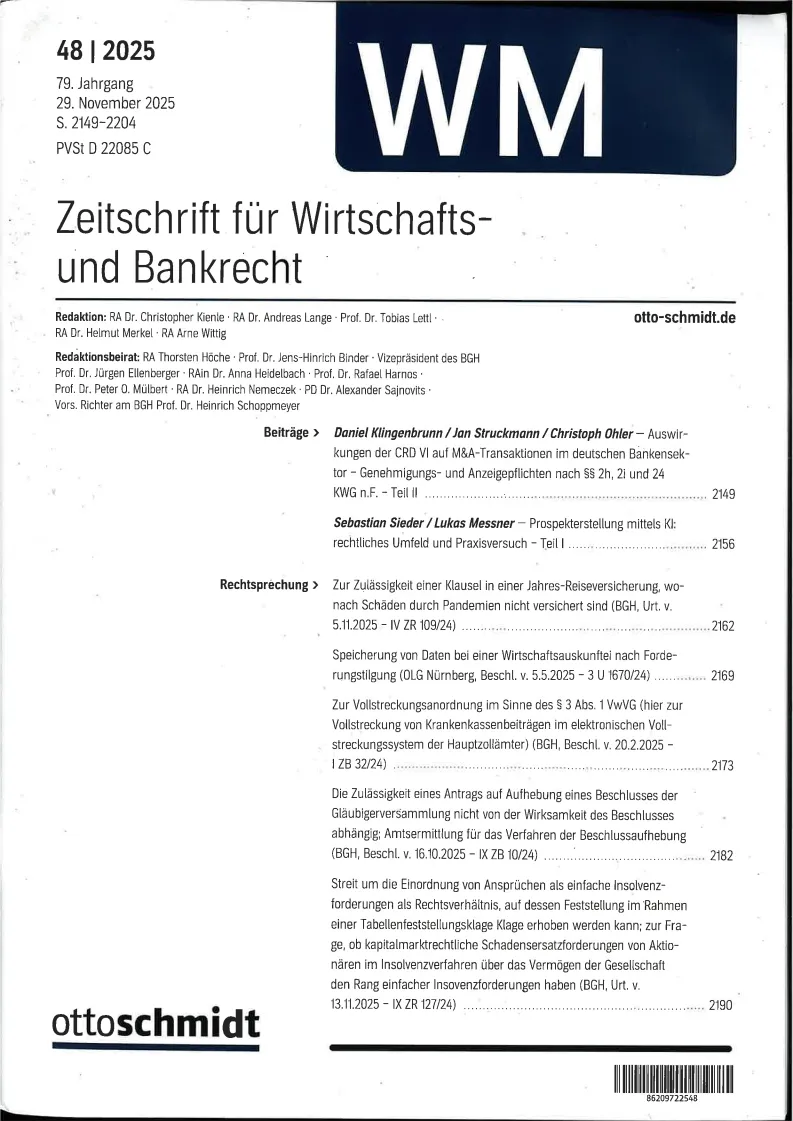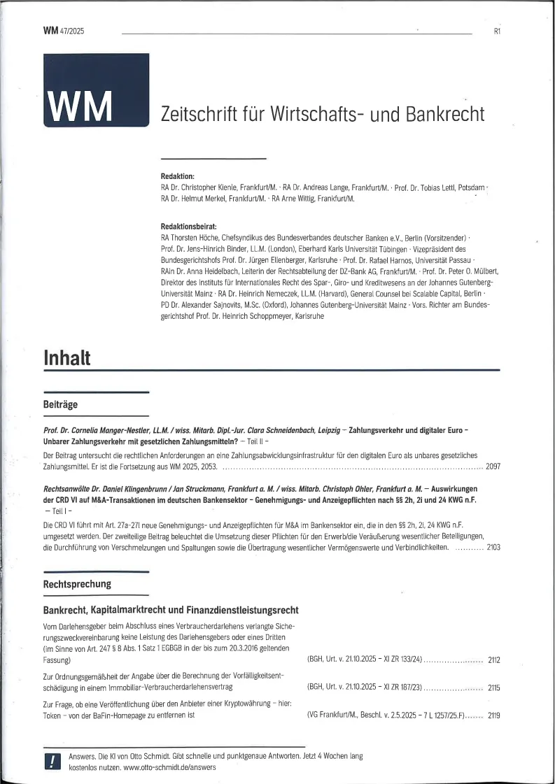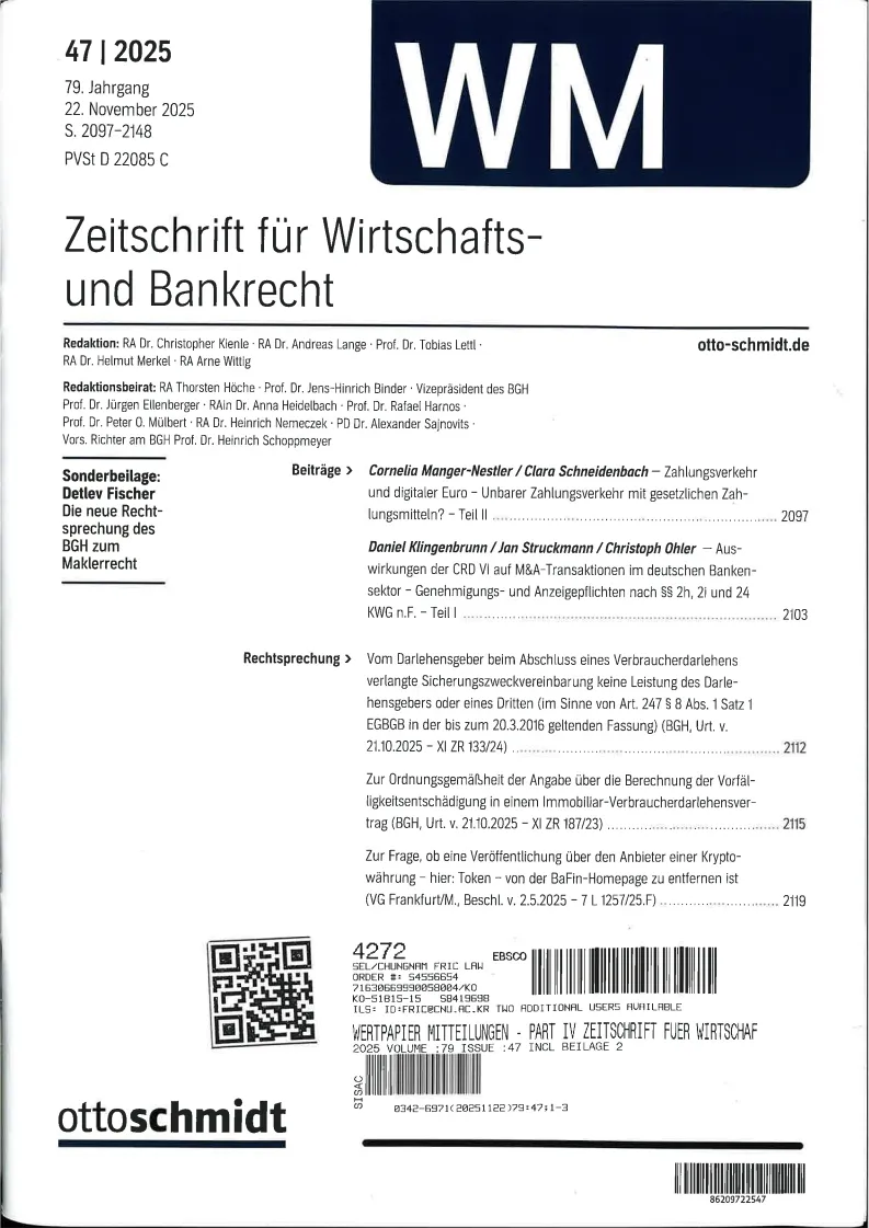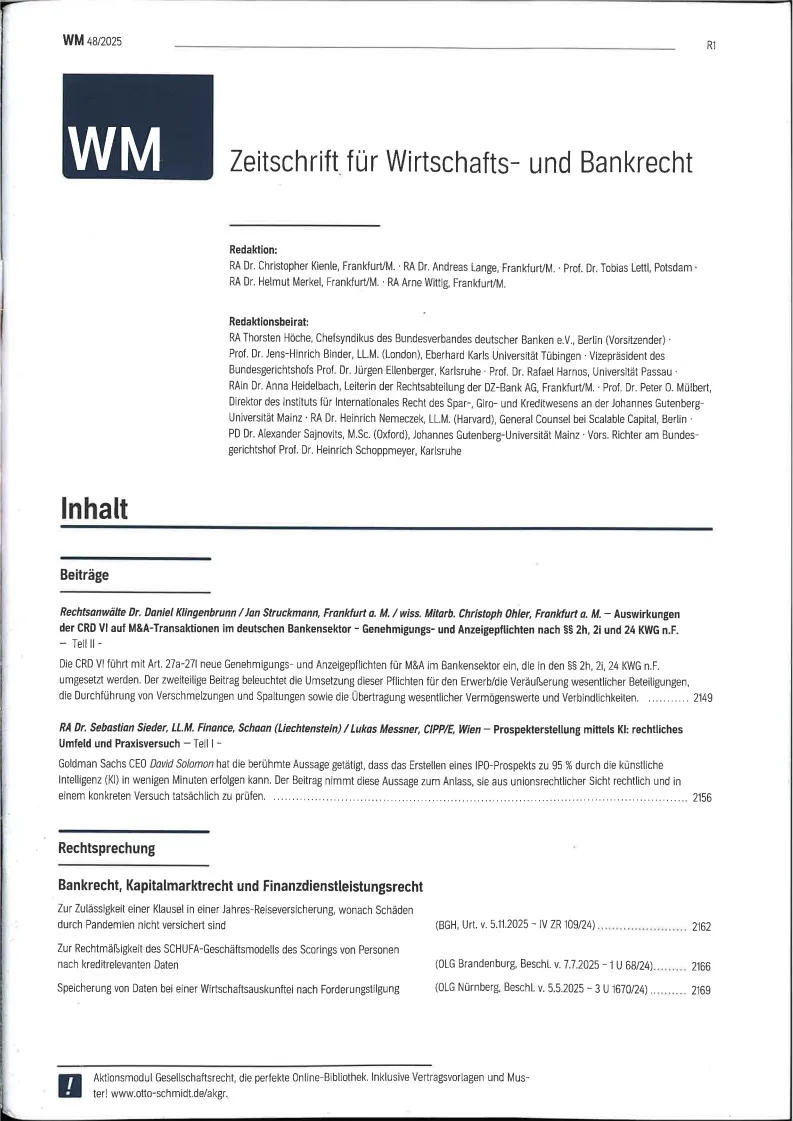 Wertpapier Mitteilungen - Part IV Zeitschrift fuer Wirtschafts und Bankrecht