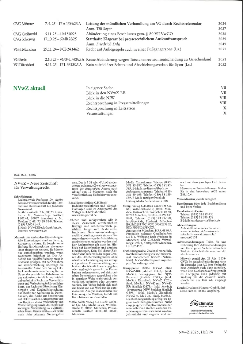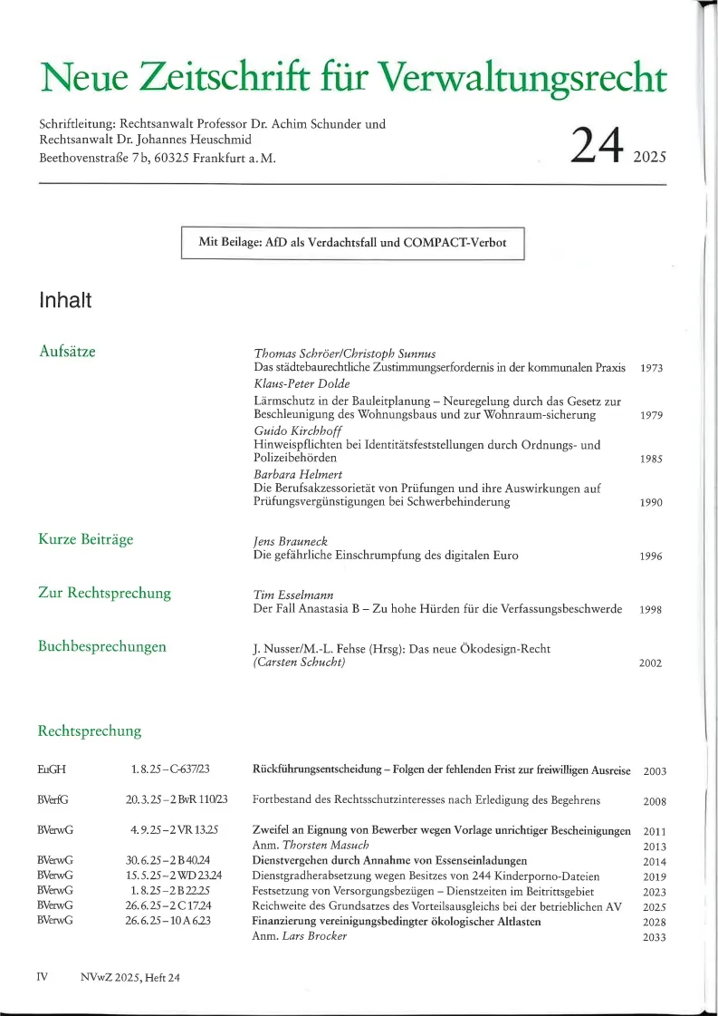 NVWZ : Neue Zeitschrift fuer Verwaltungsrecht Ohne NVWZ