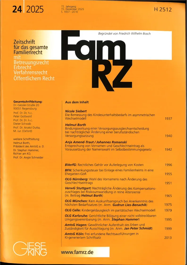 FamRZ : Zeitschrift für das gesamte Familienrecht