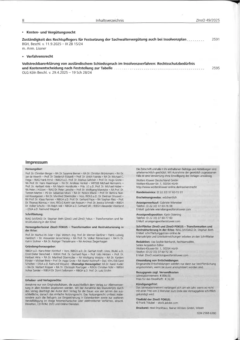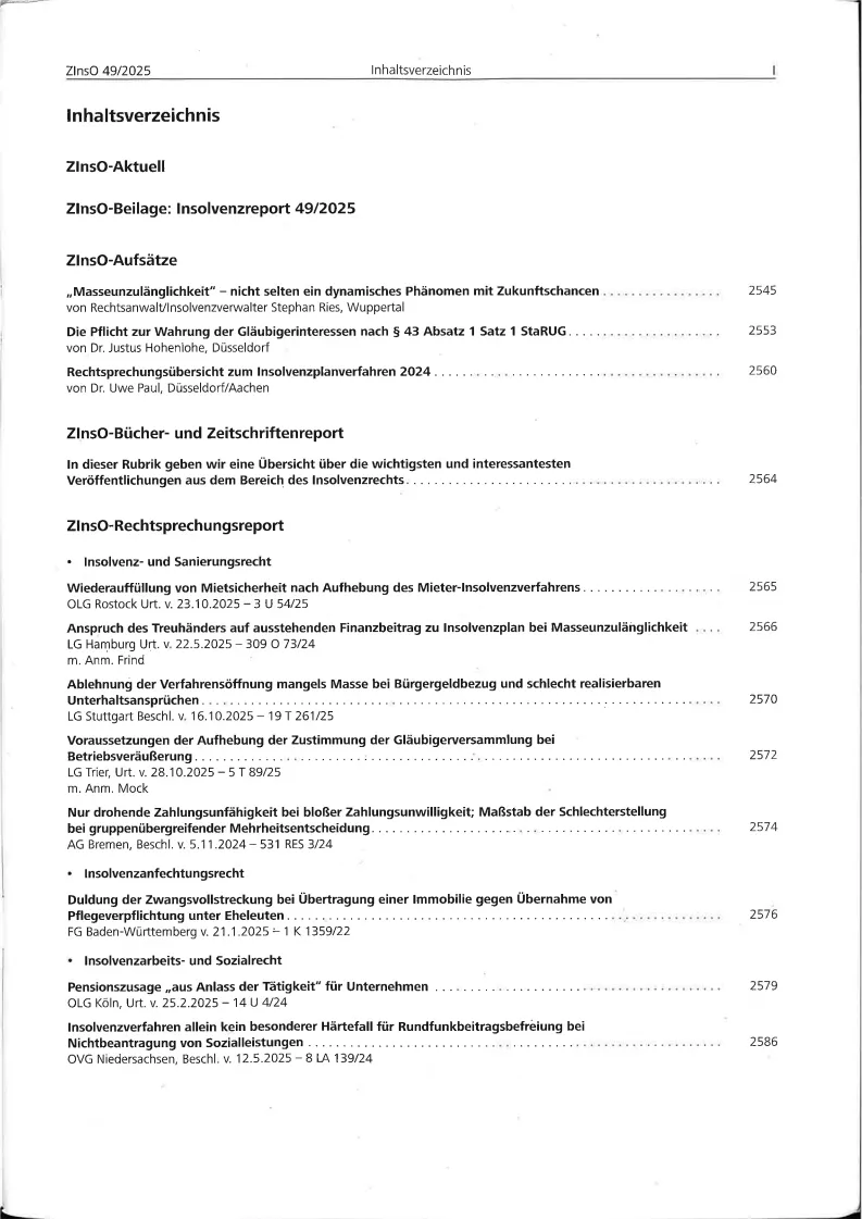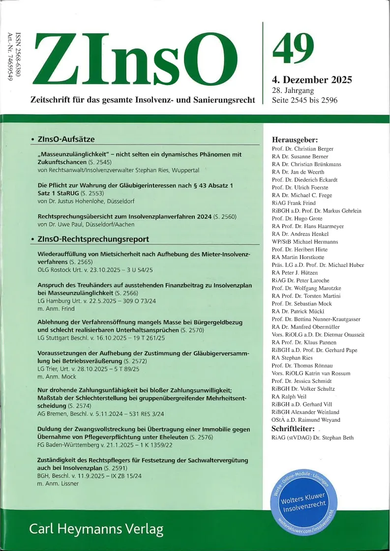 ZInsO : Zeitschrift fuer das Gesamte Insolvenz- UND Sanierungsrecht