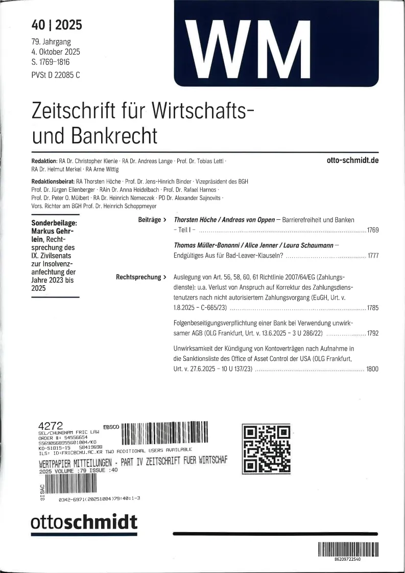 Wertpapier Mitteilungen - Part IV Zeitschrift fuer Wirtschafts und Bankrecht