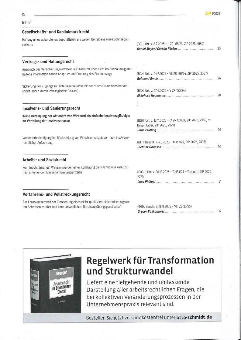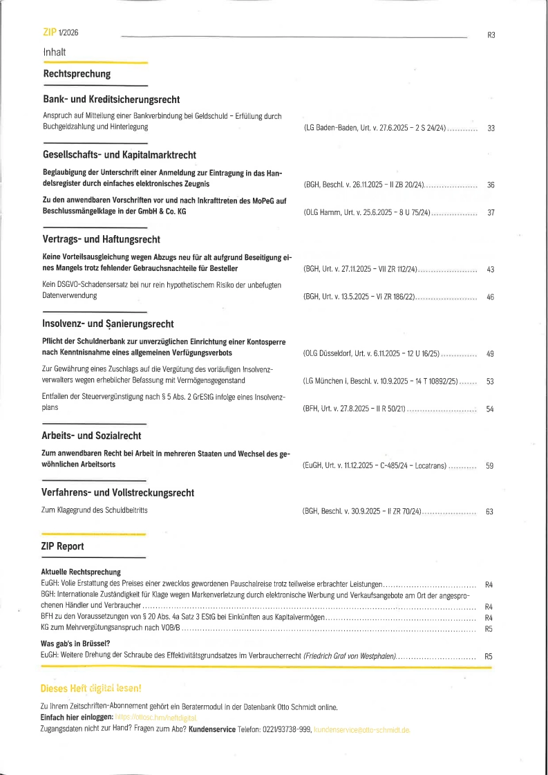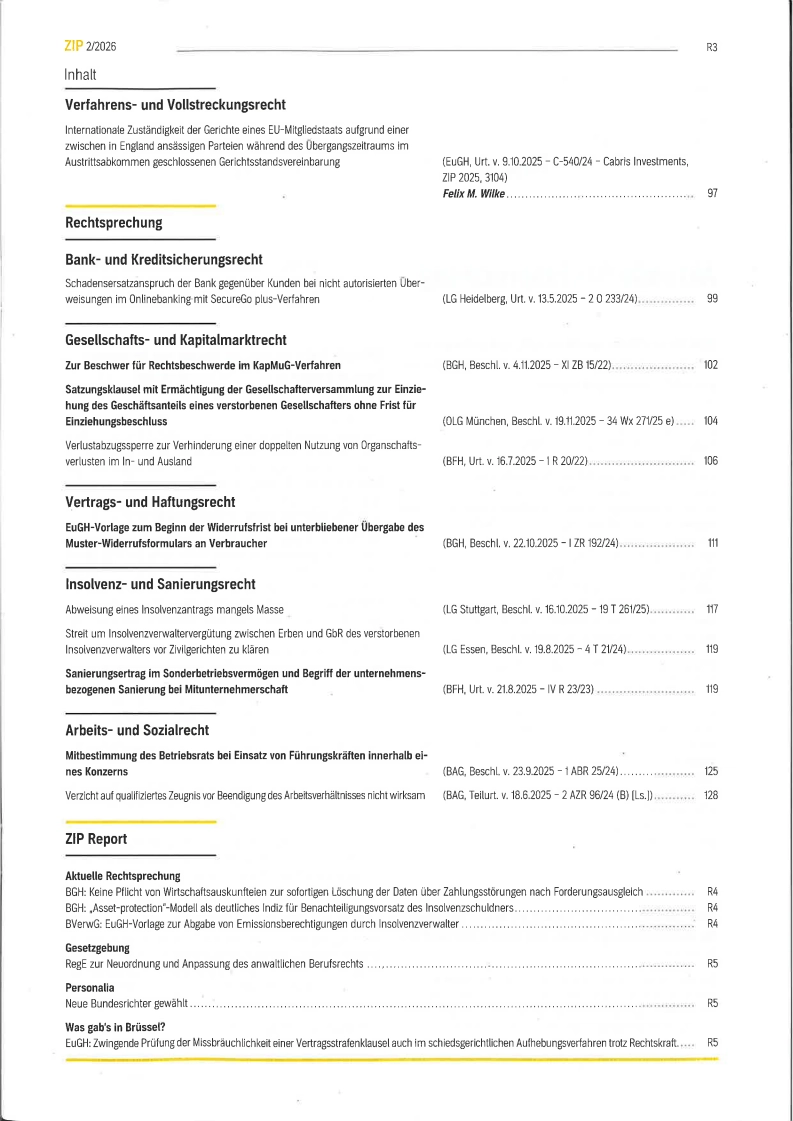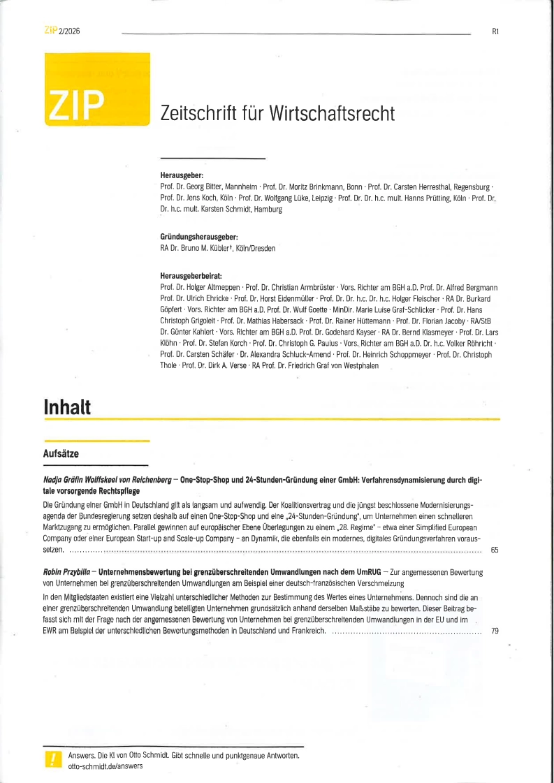 ZIP: Zeitschrift für Wirtschaftsrecht