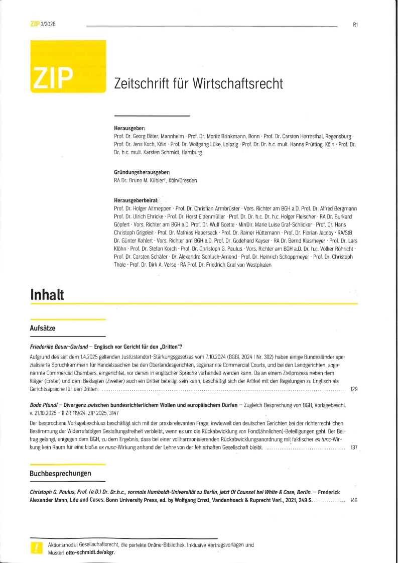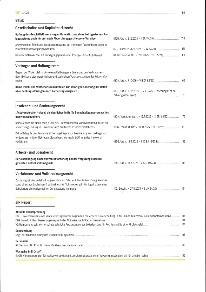 ZIP: Zeitschrift für Wirtschaftsrecht