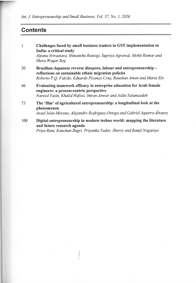International Journal of Entrepreneurship and Small Business