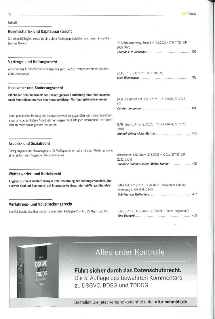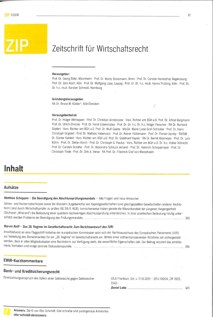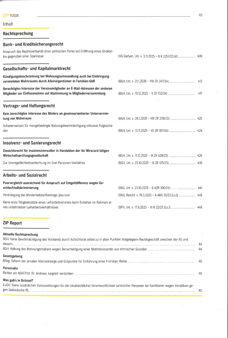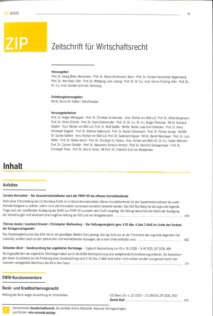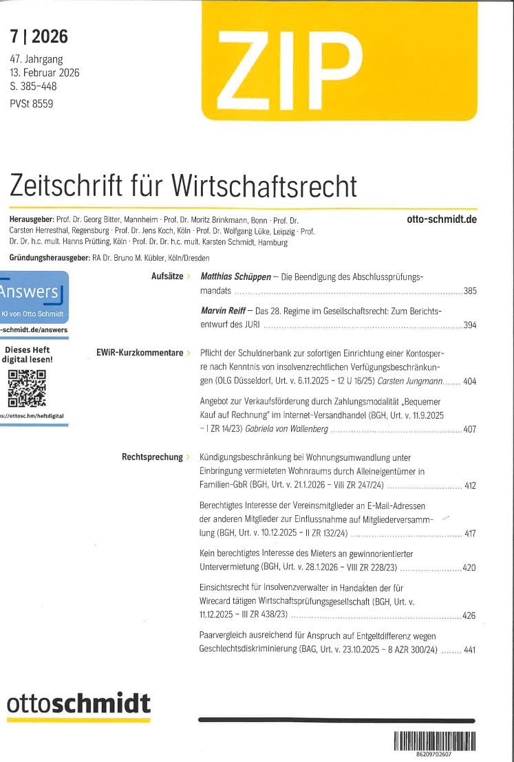 ZIP: Zeitschrift für Wirtschaftsrecht