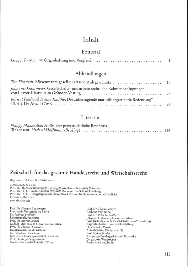Zeitschrift für das gesamte Handelsrecht und Wirtschaftsrecht