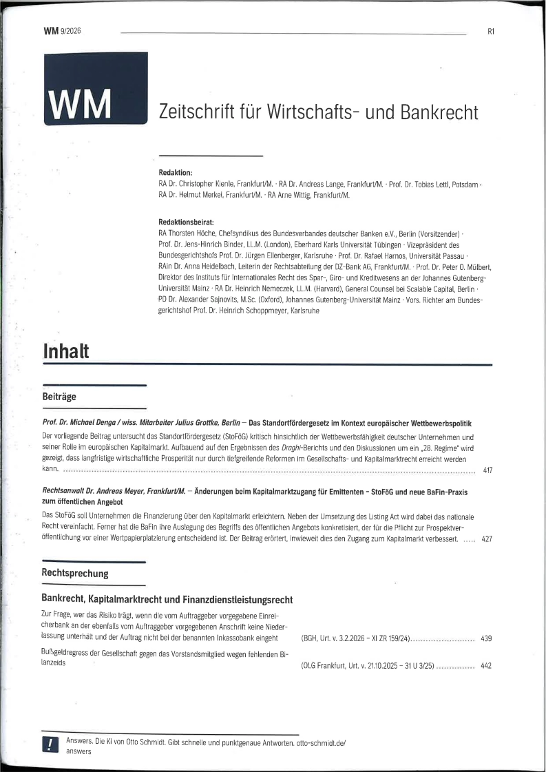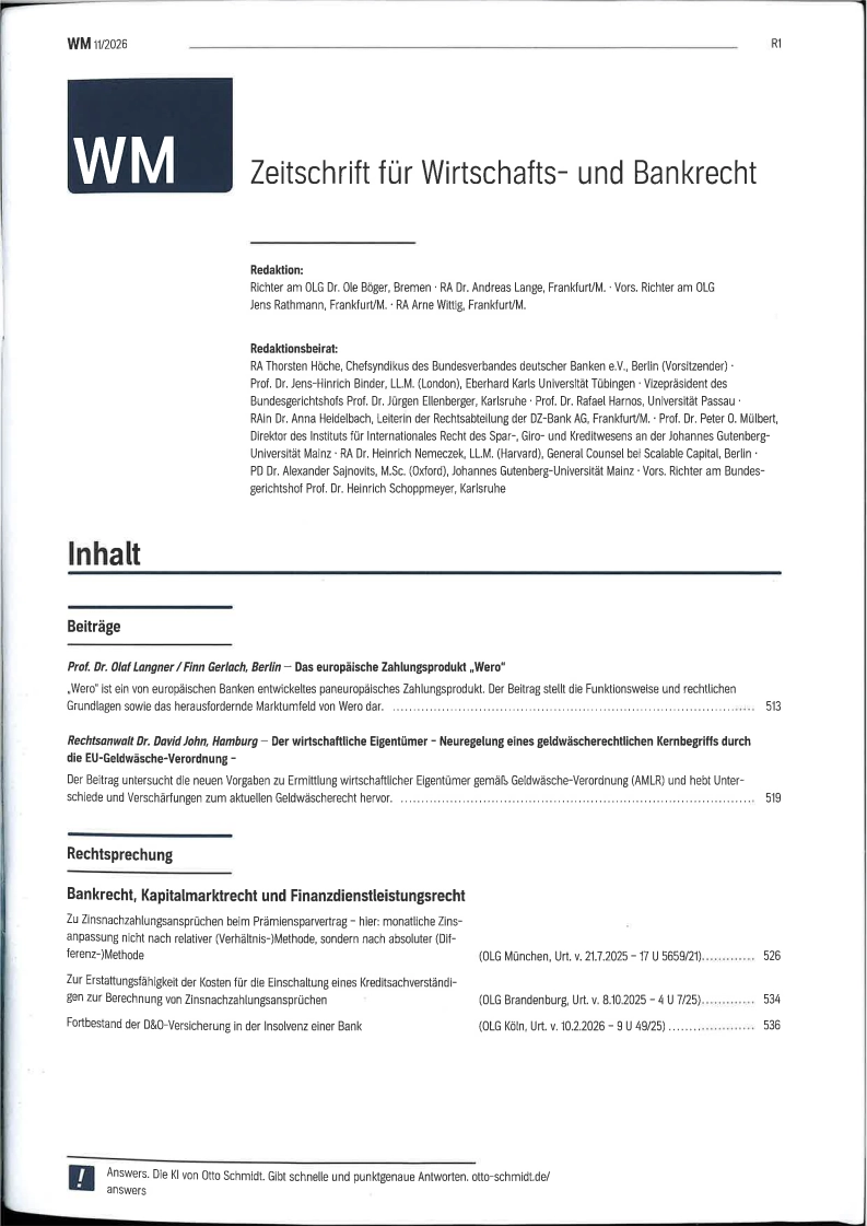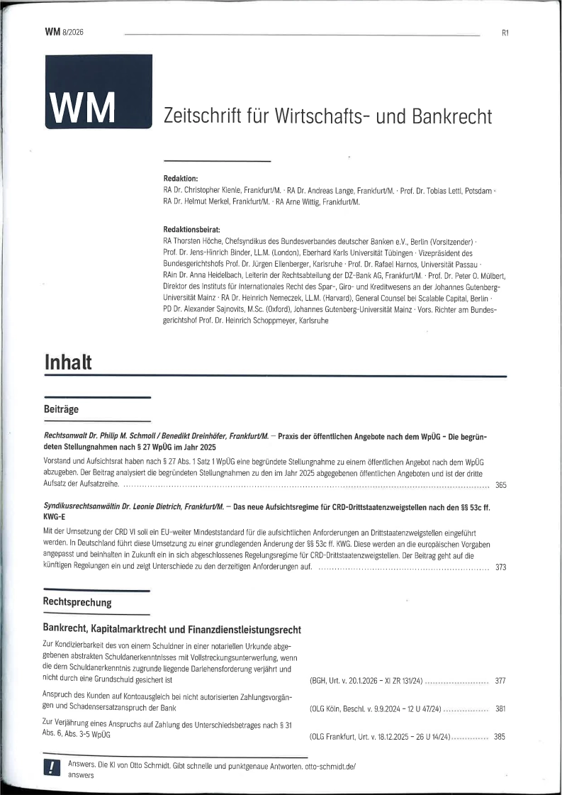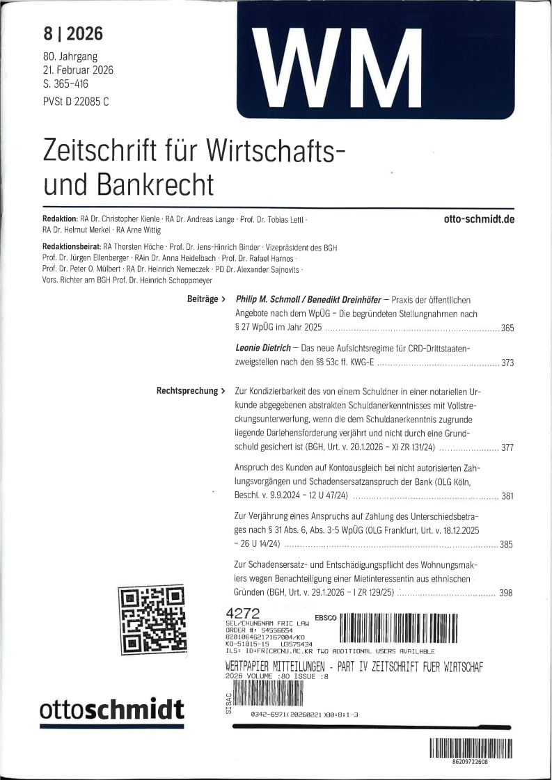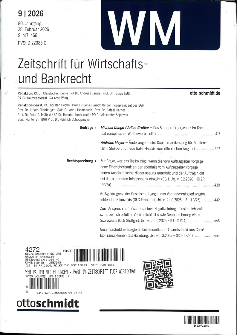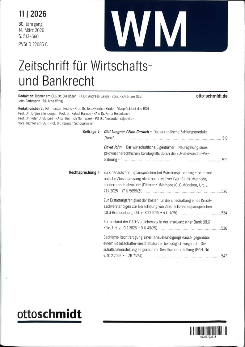 Zeitschrift für Wirtschafts und Bankrecht